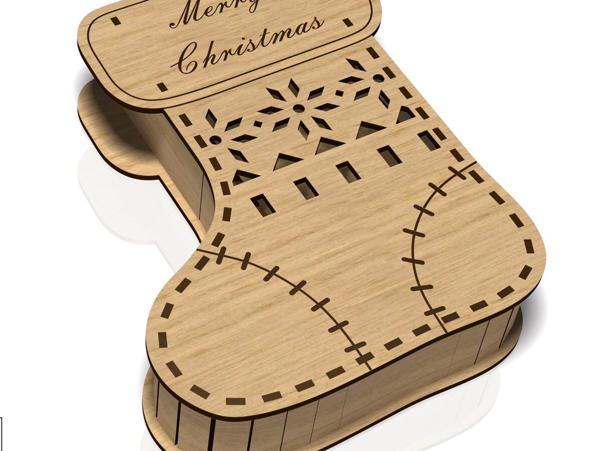 Intra απο ξύλο plywood 3mm-4mm πάχος Χριστουγεννιάτικη Κάλτσα X-mas Box Κουτί δώρου Δίασταση 15×15 cm INTRAFABR-39481625