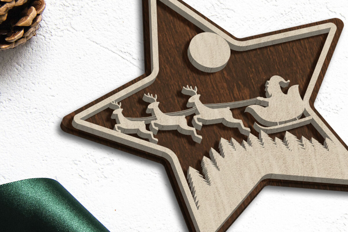 Intra απο ξύλο plywood 3mm-4mm πάχος Χριστουγεννιάτικο Αστέρι, Διακόσμηση Χριστουγεννιάτικου Δέντρου Δίασταση 4×4 cm INTRAFABR-84429176