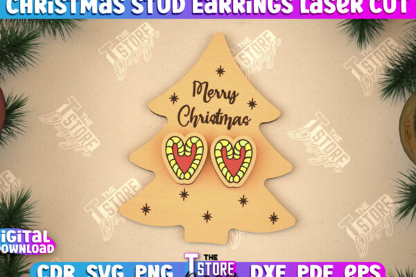 Intra απο ξύλο plywood 3mm-4mm πάχος Χριστουγεννιάτικα καρφωτά σκουλαρίκια | Σχεδιασμός κοσμημάτων Δίασταση 3×3 cm INTRAFABR-105341463