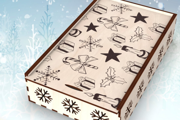 Intra απο ξύλο plywood 3mm-4mm πάχος – Χριστουγεννιάτικο Συρόμενο Κουτί Χαρακτική Θησαυρού Δίασταση 15×15 cm INTRAFABR-109675538