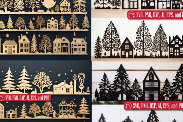 Intra απο ξύλο plywood 3mm-4mm πάχος – Χριστουγεννιάτικο Χωριό Mega Bundle Δίασταση 4×4 cm INTRAFABR-81562264
