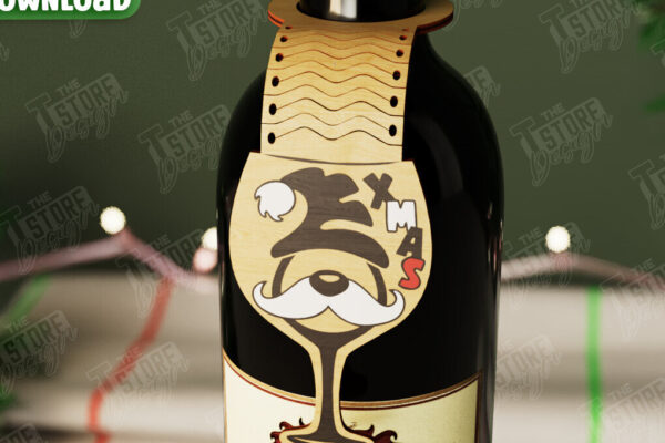 Intra απο ξύλο plywood 3mm-4mm πάχος – Χριστουγεννιάτικο μπουκάλι κρασιού Ετικέτα | Ετικέτα διακοπών Δίασταση 15×15 cm INTRAFABR-108586263
