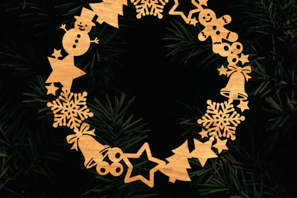Intra απο ξύλο plywood 3mm-4mm πάχος – Χριστουγεννιάτικο στεφάνι τρισδιάστατο σχέδιο κοπής με λέιζερ Δίασταση 20×20 cm INTRAFABR-109213709