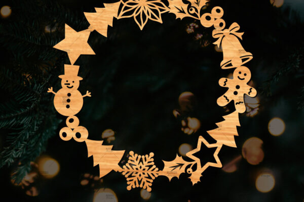 Intra απο ξύλο plywood 3mm-4mm πάχος – Χριστουγεννιάτικο στεφάνι τρισδιάστατο σχέδιο κοπής με λέιζερ Δίασταση 20×20 cm INTRAFABR-109213740