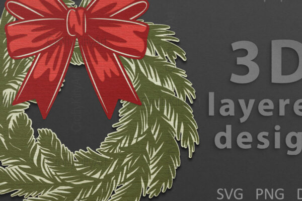 Intra απο ξύλο plywood 3mm-4mm πάχος – Χριστουγεννιάτικο στεφάνι 3D Lasercut & Papercut Δίασταση 30×20 cm INTRAFABR-108873904