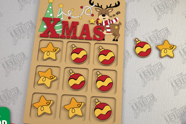 Intra απο ξύλο plywood Χρώμα wenge 3mm-4mm πάχος – Χριστουγεννιάτικο Tic Tac Toe | Επιτραπέζιο παιχνίδι | CNC Δίασταση 15×15 cm INTRAFABR-105774789