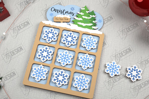 Intra απο ξύλο plywood Χρώμα wenge 3mm-4mm πάχος – Χριστουγεννιάτικο Tic Tac Toe | Επιτραπέζιο παιχνίδι | CNC Δίασταση 15×15 cm INTRAFABR-39418816