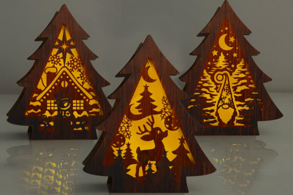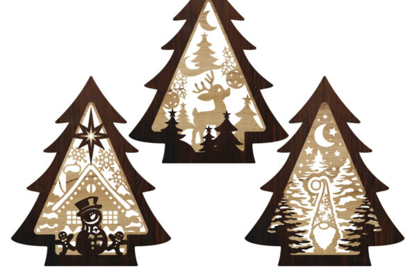 Intra απο ξύλο plywood Χρώμα wenge 3mm-4mm πάχος – Χριστουγεννιάτικο Δέντρο – Νυχτερινό Φως – Σετ 3 τεμ Δίασταση 5×6 cm INTRAFABR-107174723