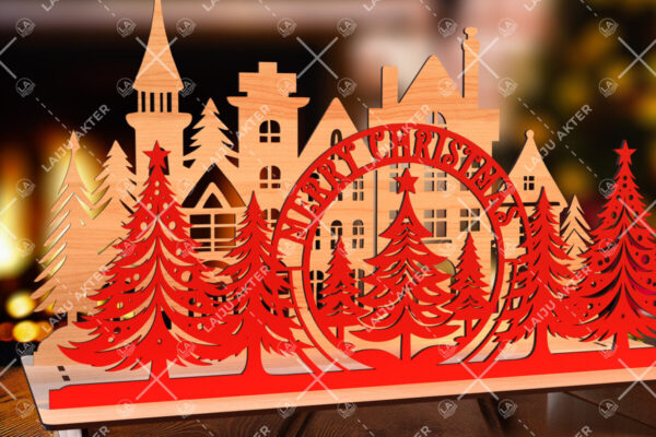 Intra απο ξύλο plywood Χρώμα wenge 3mm-4mm πάχος – Χριστουγεννιάτικο χωριό Scene Δίασταση 15×15 cm INTRAFABR-105340459