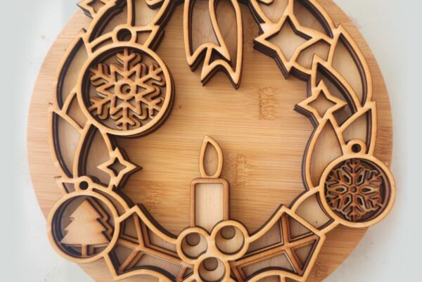 Χριστουγεννιάτικο στεφάνι 3D, Στολίδι Μάνταλα Πρόκειται για ψηφιακό σχεδίου, ιδανικό για κοπή με ή plotter. Κατασκευασμένο απο Ξύλο από plywood [3mm ή 4mm], κομμένο με ακρίβεια στην βιοτεχνία Intrahome . Το φυσικό ξύλο προσφέρει μια κομψή, αυθεντική υφή και μπορεί εύκολα να βαφτεί ή να διακοσμηθεί σύμφωνα με το προσωπικό σας γούστο. Ελληνική παραγωγή – Κατασκευάζεται στην Ελλάδα με προσοχή στη λεπτομέρεια και υψηλές προδιαγραφές ποιότητας. ✔️ Υλικό: Plywood υψηλής ποιότητας ✔️ Διατίθεται σε πάχος 3mm ή 4mm ✔️ Ελαφρύ, ανθεκτικό και εύκολο στη χρήση ✔️ Ιδανικό για βάψιμο, χάραξη, κόλληση και χειροτεχνίες ✔️ Κατάλληλο για μπομπονιέρες, διακόσμηση, δώρα και DIY projects ✅ Εγγύηση 2 ετών – Σε περίπτωση σπασίματος, η αντικατάσταση γίνεται άμεσα, χάρη στην τοπική ελληνική παραγωγή μας. Ιδανικό για δημιουργικούς ανθρώπους που αγαπούν το DIY. Μπορεί να γίνει ξεχωριστό δώρο με προσωπικό χαρακτήρα. Φέρνει “χειροποίητη” αισθητική στη διακόσμηση. -files- Ελληνική χειροποίητη παραγωγή → στηρίζετε τοπικούς δημιουργούς. Κάθε κομμάτι έχει τη δική του φυσική ξύλινη υφή (μοναδικότητα). Δυνατότητα ειδικής παραγγελίας (άλλα μεγέθη / σχήματα). Άμεση ανταπόκριση & υποστήριξη. Εγγύηση αντικατάστασης (ήδη το έχεις). Μπορεί να μετατραπεί σε προσωποποιημένο αντικείμενο με χάραξη ή χρώμα. -files– Μη τοξικό υλικό → ασφαλές για παιδιά (με επίβλεψη). Ελαφρύ και εύκολο στη μεταφορά. Συσκευάζεται με προστασία για να φτάνει πάντα άθικτο. -files–files- Ιδανικό για event planners, καταστήματα ειδών δώρου, κατασκευαστές . Διατίθεται σε χονδρική με ειδικές τιμές & εκπτώσεις σε ποσότητα. Ανοιχτές Αποχρώσεις