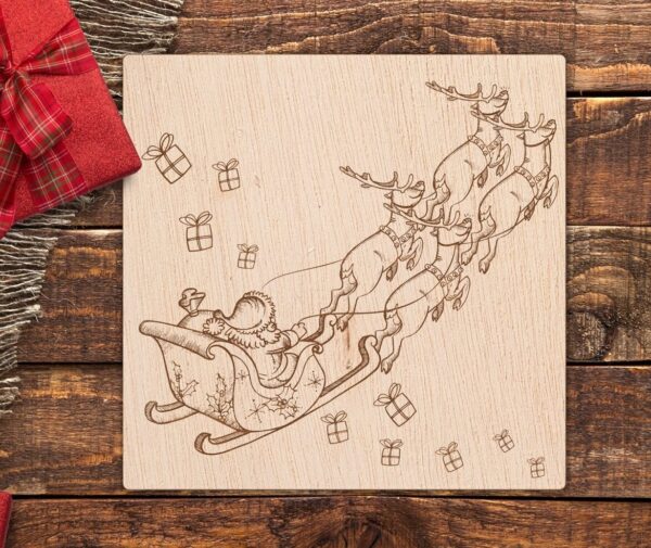 Intra απο ξύλο plywood 3mm-4mm πάχος – Χριστουγεννιάτικο θέμα με χαραγμένο λέιζερ Έλκηθρο με τάρανδο Άγιου Βασίλη Δίασταση 30×30 cm Intraeaxys-ro6yxr67