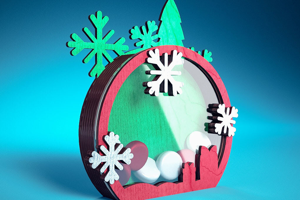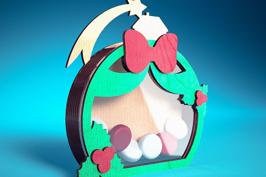 Intra απο ξύλο plywood 3mm-4mm πάχος Χριστουγεννιάτικη θήκη καραμέλας με | Δίασταση 15×15 cm INTRAFABR-72172029