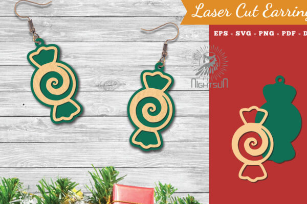 Intra απο ξύλο plywood 3mm-4mm πάχος Χριστουγεννιάτικα σκουλαρίκια κομμένα με λέιζερ καραμέλα 3 Δίασταση 3×3 cm INTRAFABR-112553200