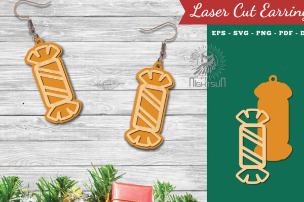Intra απο ξύλο plywood 3mm-4mm πάχος Χριστουγεννιάτικα σκουλαρίκια με λέιζερ καραμέλα 4 Δίασταση 3×3 cm INTRAFABR-112553266