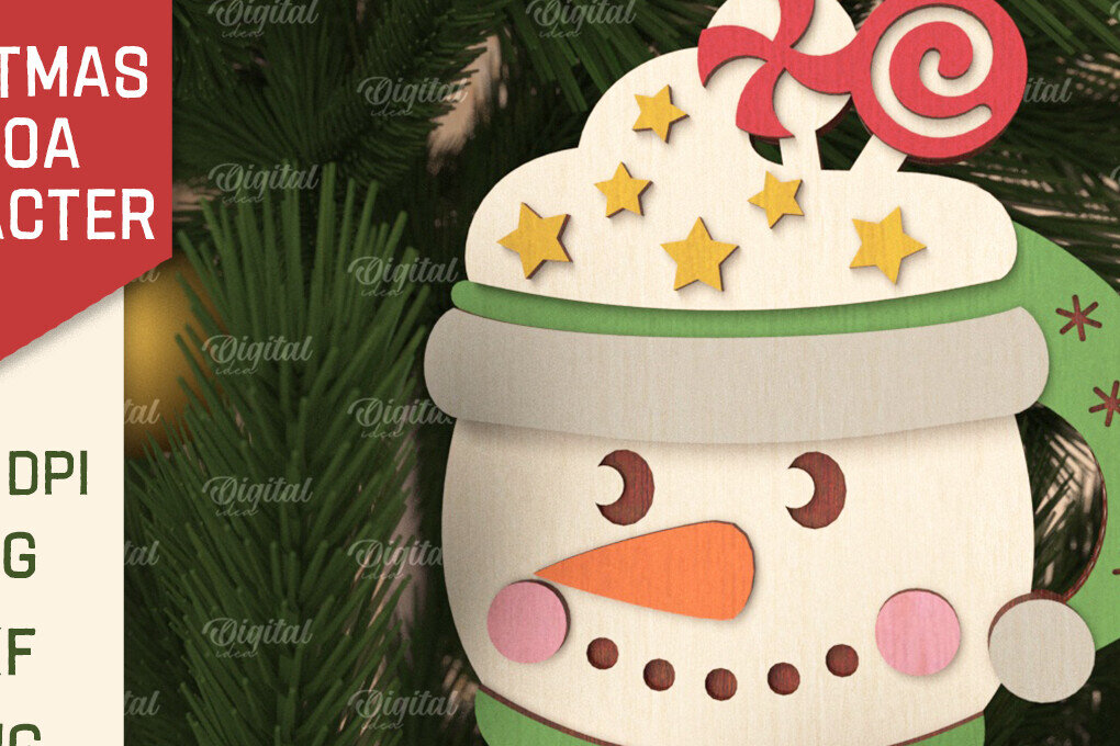 Intra απο ξύλο plywood 3mm-4mm πάχος Χριστουγεννιάτικο λέιζερ με χαρακτήρες κακάο Δίασταση 8×8 cm INTRAFABR-105753293