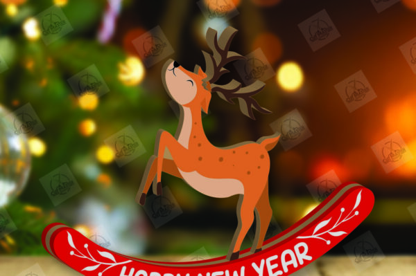 Intra απο ξύλο plywood 3mm-4mm πάχος – Χριστουγεννιάτικο στολίδι Rocking Reindeer Δίασταση 20×20 cm INTRAFABR-110123715