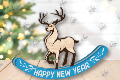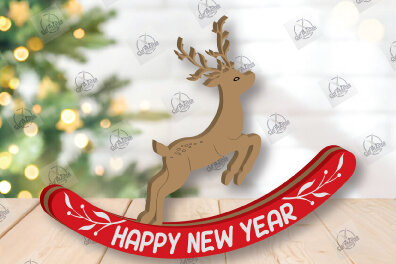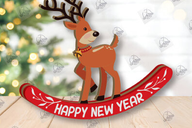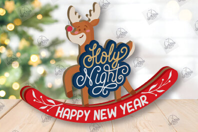 Intra απο ξύλο plywood 3mm-4mm πάχος – Χριστουγεννιάτικα στολίδια Rocking Reindeer Δίασταση 20×20 cm INTRAFABR-110201730