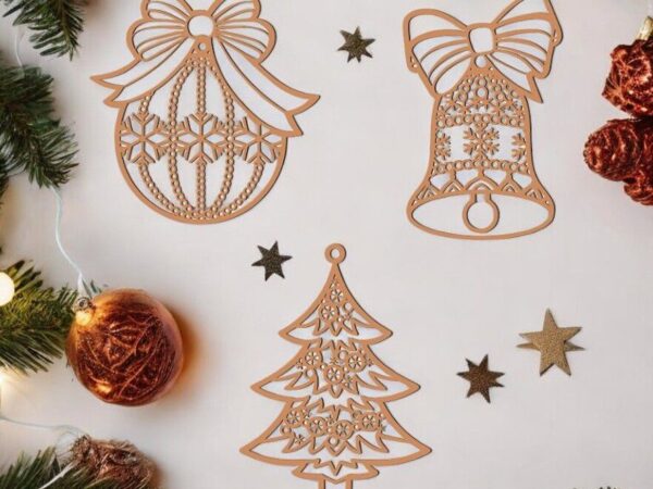 Intra απο ξύλο plywood 3mm-4mm πάχος – Χριστουγεννιάτικο δέντρο με μπάλα καμπάνα στολίδι 25×30 cm INTRAVECTRY-MY549293