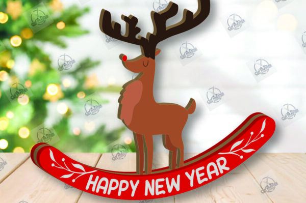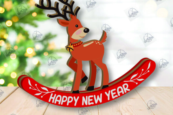 Intra απο ξύλο plywood 3mm-4mm πάχος – Χριστουγεννιάτικα στολίδια Rocking Reindeer Δίασταση 20×20 cm INTRAFABR-110201809