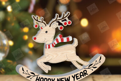 Intra απο ξύλο plywood 3mm-4mm πάχος – Χριστουγεννιάτικα στολίδια Rocking Reindeer Δίασταση 20×20 cm INTRAFABR-110123871