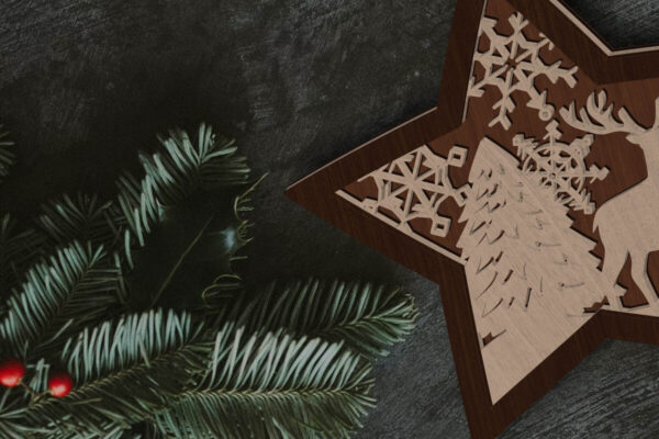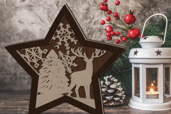 Intra απο ξύλο plywood 3mm-4mm πάχος – Χριστουγεννιάτικο στολίδι αστεριών, κομμένο πρότυπο Δίασταση 20×20 cm INTRAFABR-85268978