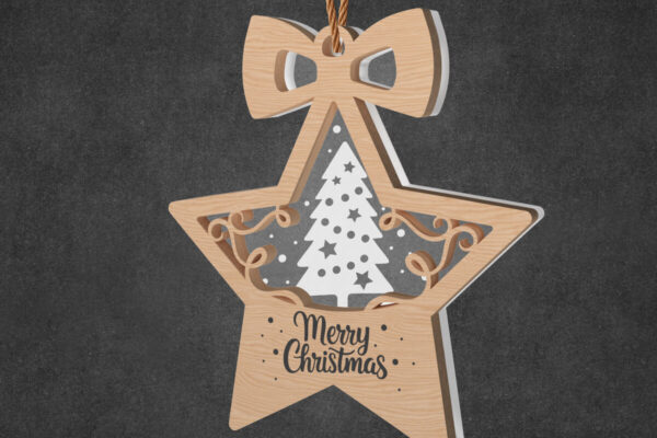 Intra απο ξύλο plywood 3mm-4mm πάχος – Χριστουγεννιάτικο στολίδι αστεριών με δέντρο Δίασταση 20×20 cm INTRAFABR-108957659