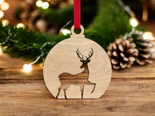 Intra απο ξύλο plywood 3mm-4mm πάχος – Χριστουγεννιάτικη Μπάλα ελαφιών 15×15 cm INTRAVECTRY-MY552586