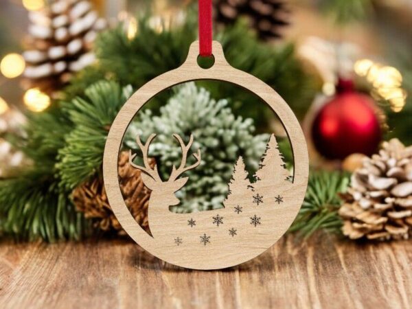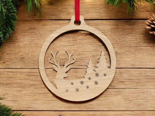 Intra απο ξύλο plywood 3mm-4mm πάχος – Χριστουγεννιάτικο μπιχλιμπίδι ελαφιών και δέντρων 12×15 cm INTRAVECTRY-MY542398