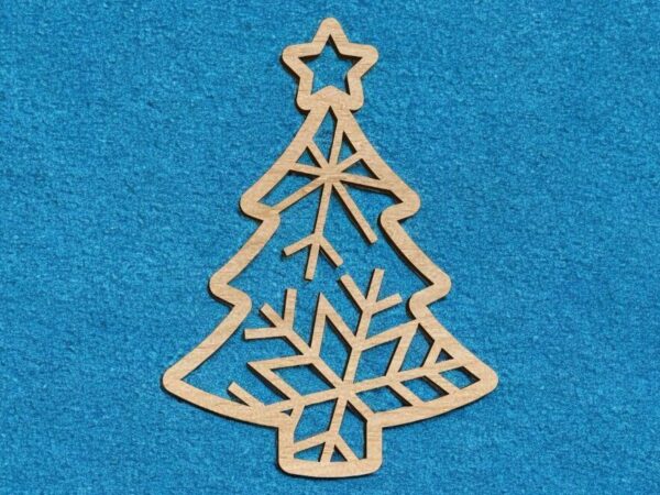 Intra απο ξύλο plywood 3mm-4mm πάχος – Χριστουγεννιάτικο δέντρο με αστέρια με στολίδι από νιφάδα χιονιού 40×40 cm INTRAVECTRY-MY542761
