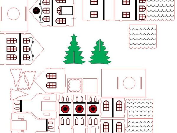 Intra απο ξύλο plywood 3mm-4mm πάχος – Χριστουγεννιάτικη εκκλησία Village Scene Ξύλινο μοντέλο 15×20 cm INTRAVECTRY-MY544537