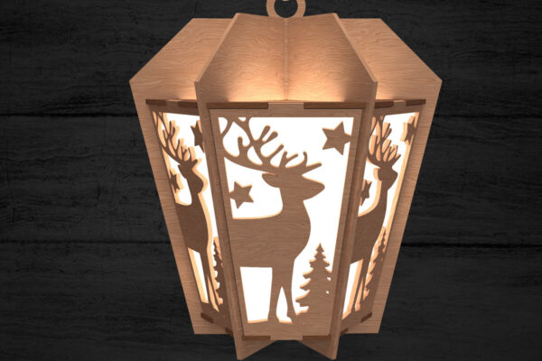 Intra απο ξύλο plywood 3mm-4mm πάχος – Χριστουγεννιάτικο φανάρι με λέιζερ τάρανδος Δίασταση 20×20 cm INTRAFABR-108902584