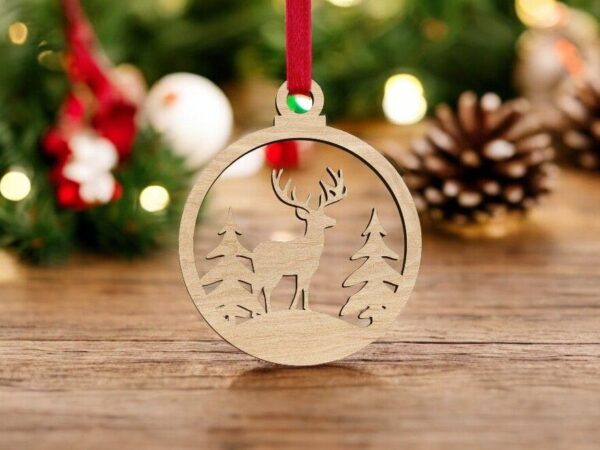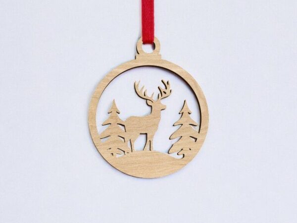 Intra απο ξύλο plywood 3mm-4mm πάχος – Χριστουγεννιάτικο δέντρο με μπιχλιμπίδι ελαφιού 25×25 cm INTRAVECTRY-MY548065
