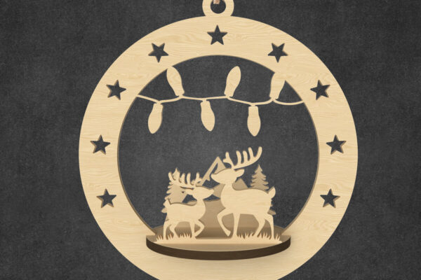 Intra απο ξύλο plywood 3mm-4mm πάχος – Χριστουγεννιάτικο Στολίδι Τάρανδος & Φώτα Δίασταση 20×20 cm INTRAFABR-109143481
