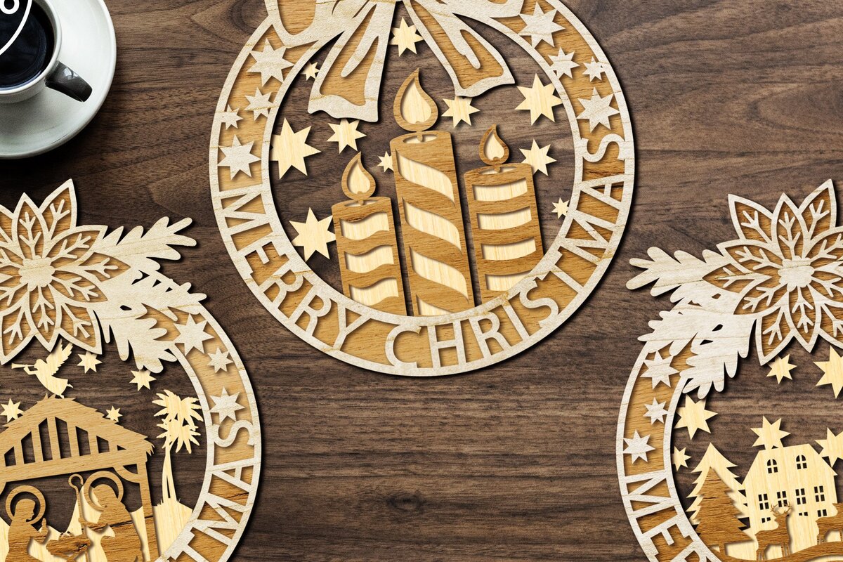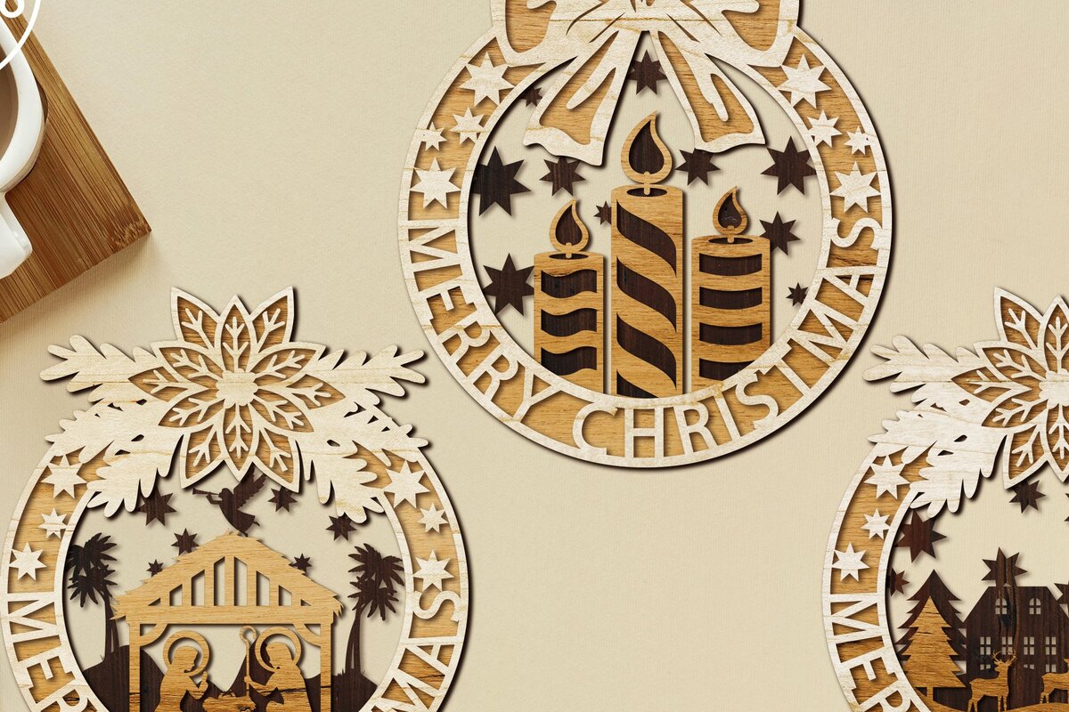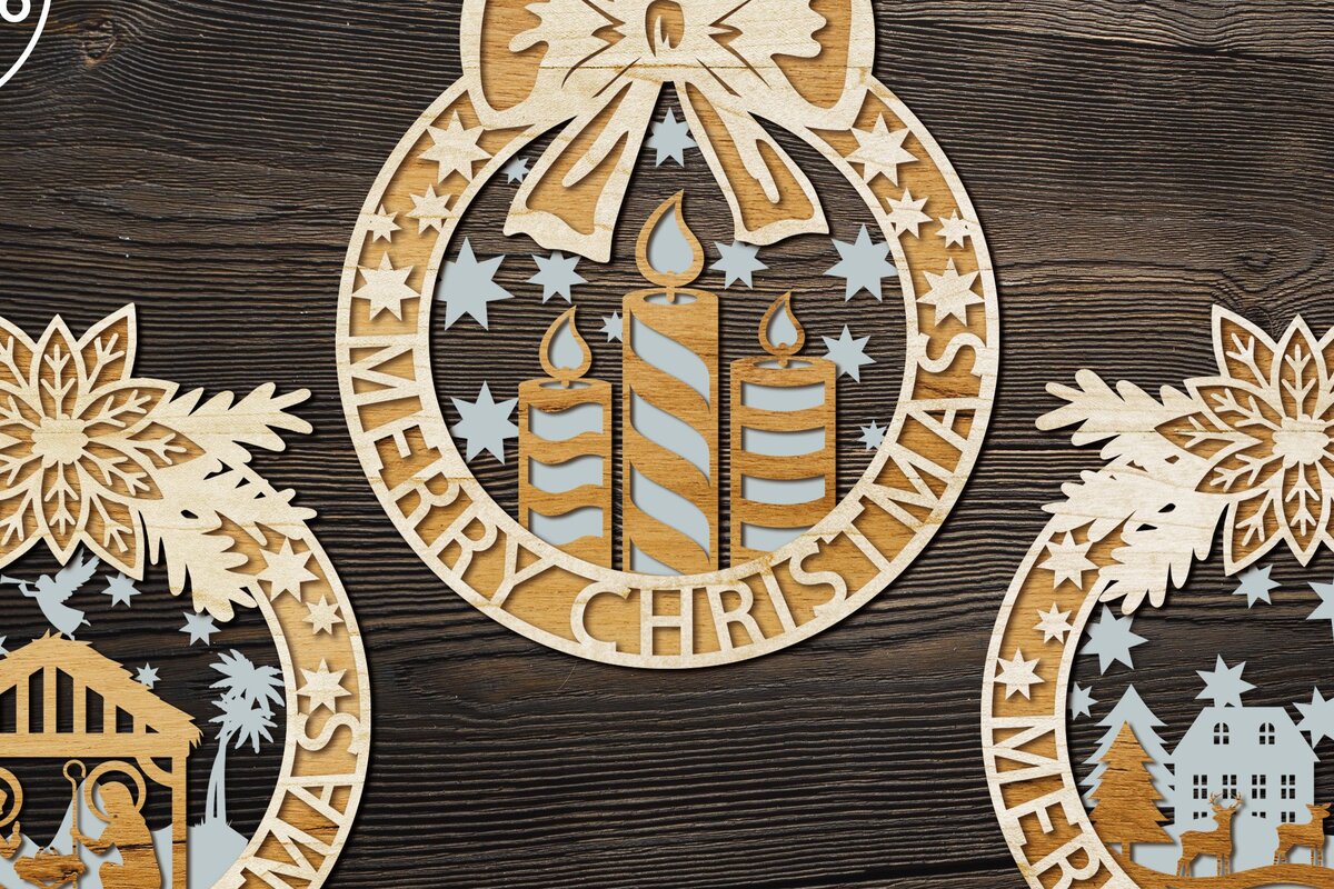 Intra απο ξύλο plywood 3mm-4mm πάχος ΧΡΙΣΤΟΥΓΕΝΝΙΑΤΙΚΑ Στολίδια 3 στεφανιών Δίασταση 4×4 cm INTRAFABR-33973447
