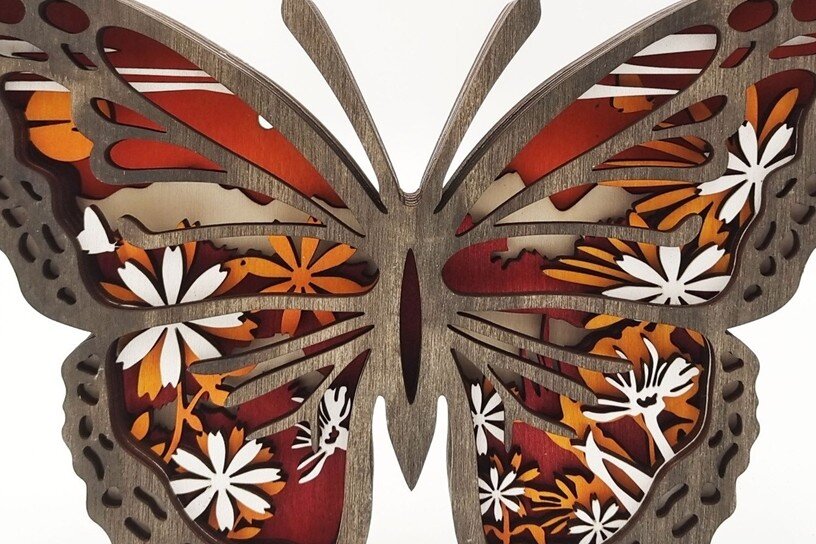 Intra απο ξύλο plywood 3mm-4mm πάχος Χριστούγεννα 2 Πεταλούδα & Panda 3D 5 στρώσεων Δίασταση 8×8 cm INTRAFABR-50978653