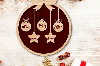 Intra απο ξύλο plywood 3mm-4mm πάχος Όνομα Χριστουγεννιάτικου Διακοσμητικού Οικογένειας & Ζώου Δίασταση 8×8 cm INTRAFABR-36889466