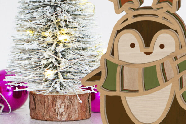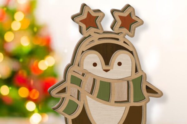 Intra απο ξύλο plywood 3mm-4mm πάχος – Όρθιος χριστουγεννιάτικος πιγκουίνος, Δίασταση 20×20 cm INTRAFABR-82011749
