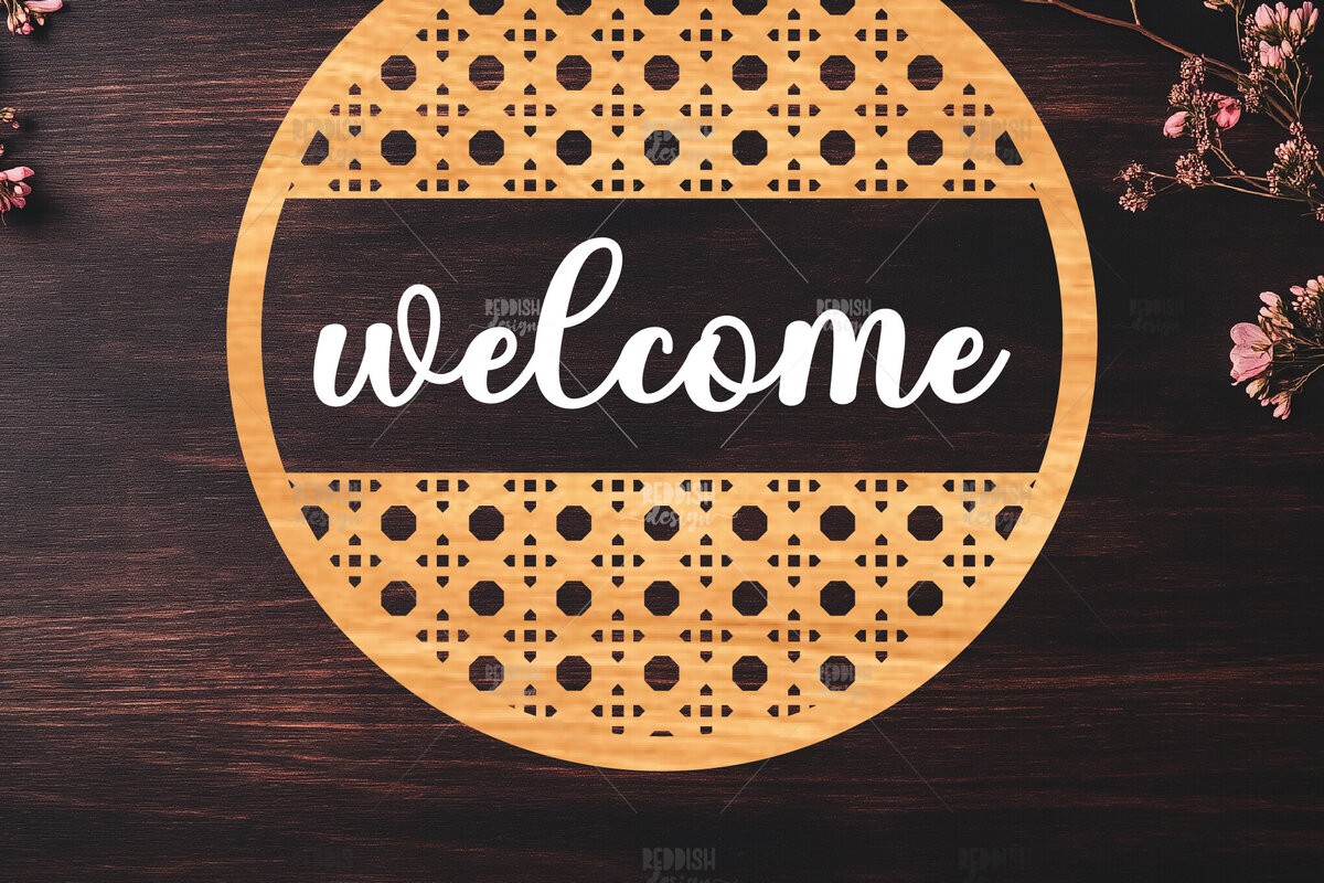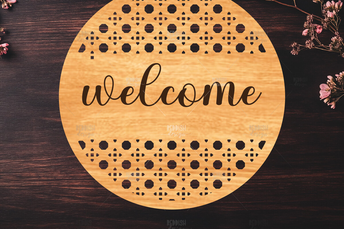 Intra απο ξύλο plywood 3mm-4mm πάχος 12 Στρογγυλή πινακίδα καλωσορίσματος Rattan Cut Δίασταση 30×20 cm INTRAFABR-123487256
