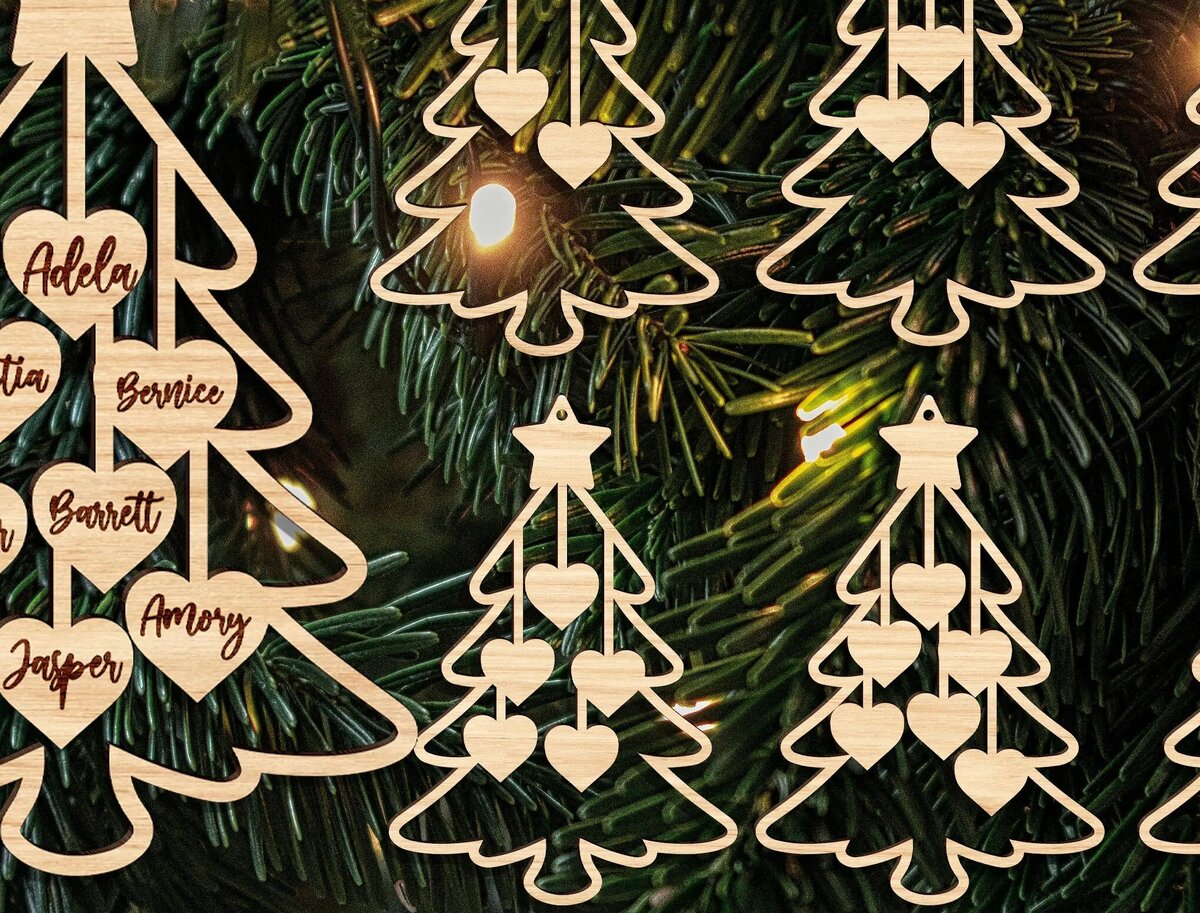 Intra απο ξύλο plywood 3mm-4mm πάχος 2024 Οικογενειακό Χριστουγεννιάτικο Στολίδι Δίασταση 8×8 cm INTRAFABR-111374024