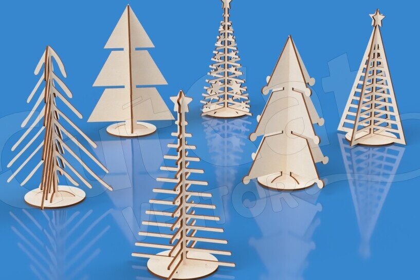 Intra απο ξύλο plywood 3mm-4mm πάχος 36 Επιτραπέζια δέντρα. Χριστουγεννιάτικη διακόσμηση σπιτιού Δίασταση 15×15 cm INTRAFABR-119110245