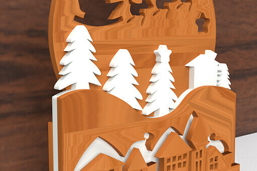 Intra απο ξύλο plywood 3mm-4mm πάχος 3D Χριστουγεννιάτικο Χωριό | Χριστούγεννα Δίασταση 15×15 cm INTRAFABR-78579663
