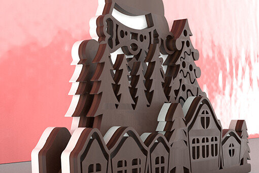 Intra απο ξύλο plywood 3mm-4mm πάχος 3D Χριστουγεννιάτικο Χωριό | Χριστούγεννα Δίασταση 30×20 cm INTRAFABR-78579548