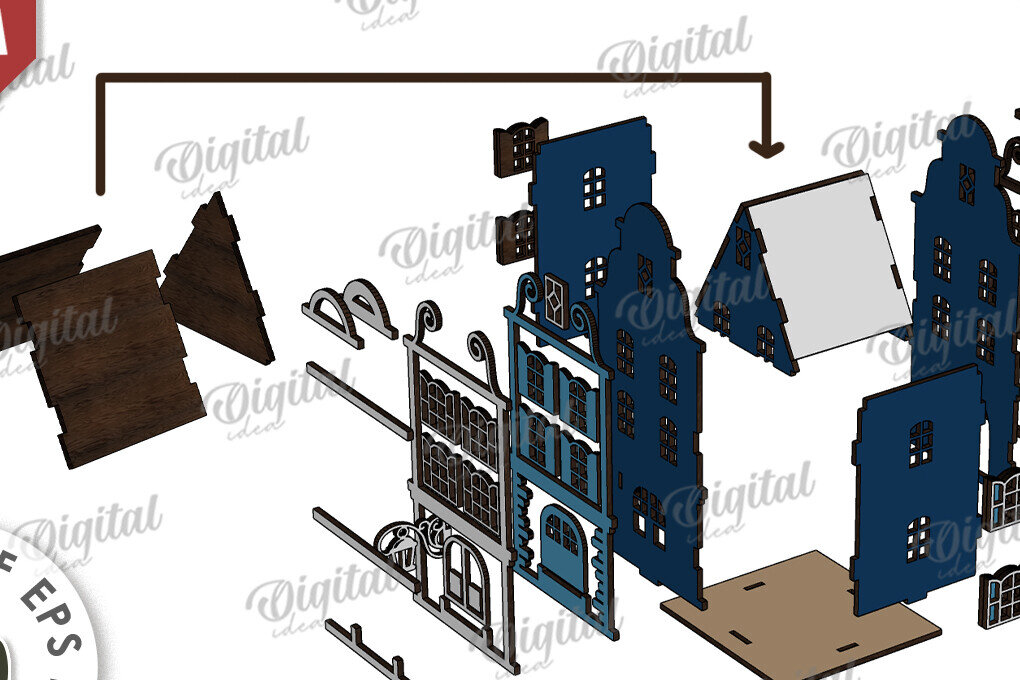 Intra απο ξύλο plywood 3mm-4mm πάχος 3D Amsterdam Houses Δίασταση 30×20 cm INTRAFABR-114874298