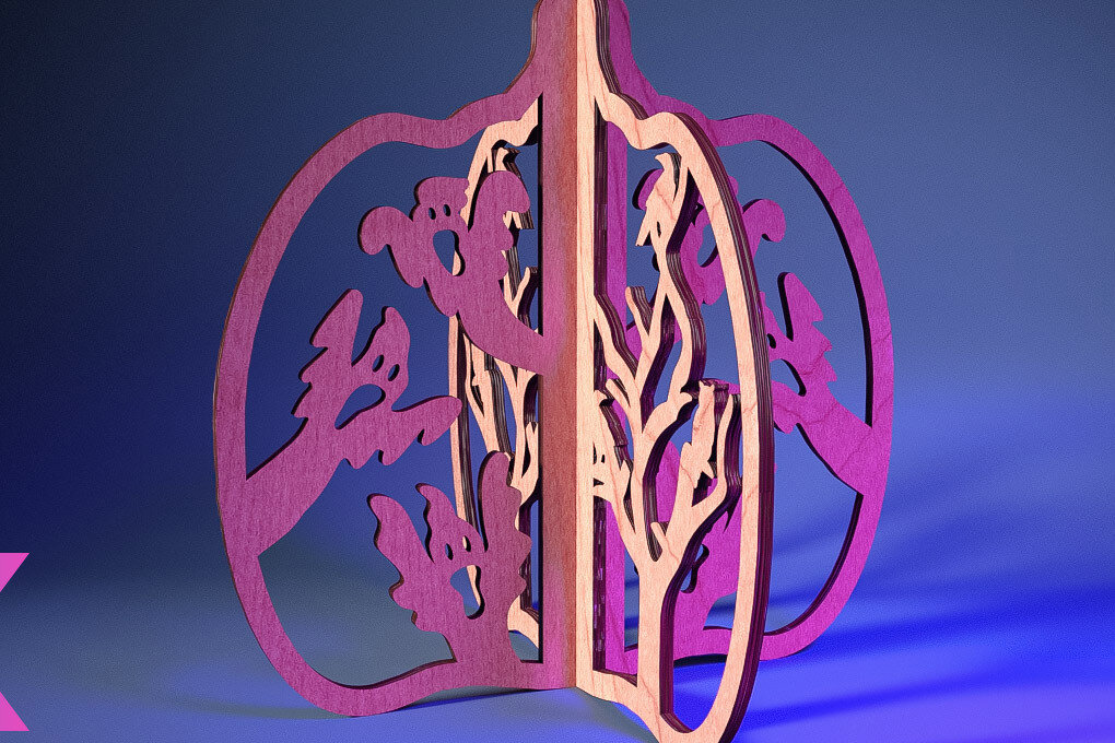 Intra απο ξύλο plywood 3mm-4mm πάχος 3D Halloween Pumpkin | Δίασταση 15×15 cm INTRAFABR-73060403