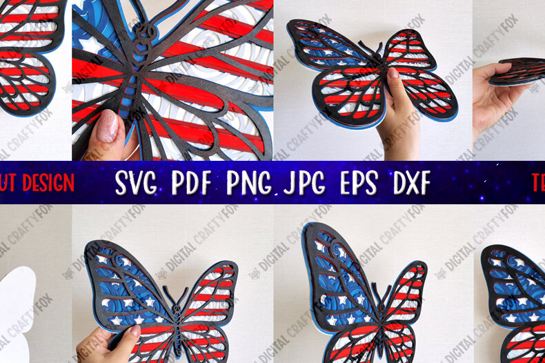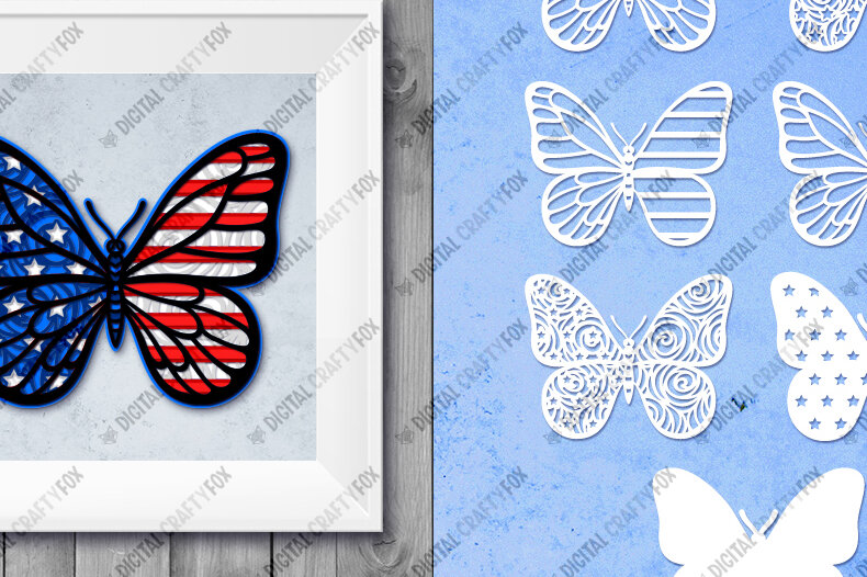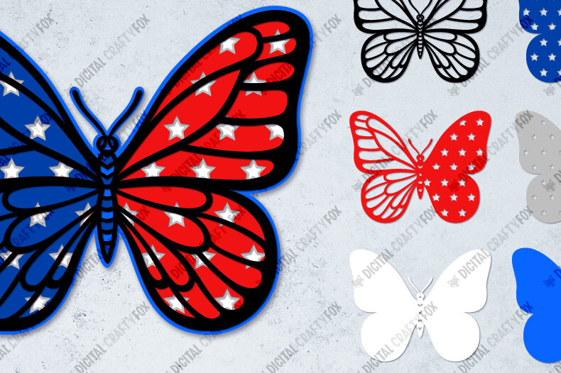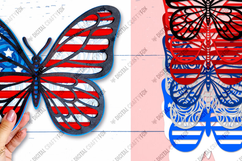 Intra απο ξύλο plywood 3mm-4mm πάχος 3D Patriotic Butterfly Papercut Δίασταση 3600×3600 cm INTRAFABR-13734483