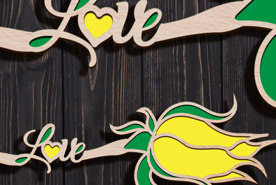 Intra απο ξύλο plywood 3mm-4mm πάχος 3D Rose Love Δίασταση 15×15 cm INTRAFABR-95047916