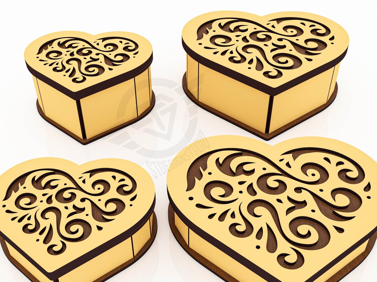 Intra απο ξύλο plywood 3mm-4mm πάχος 4 Φιλάκια Heart Box Δίασταση 15×15 cm INTRAFABR-119430854