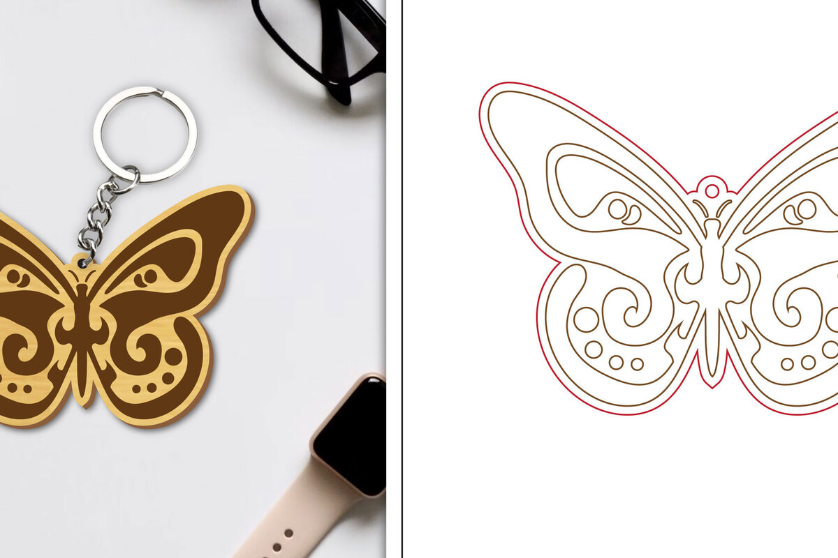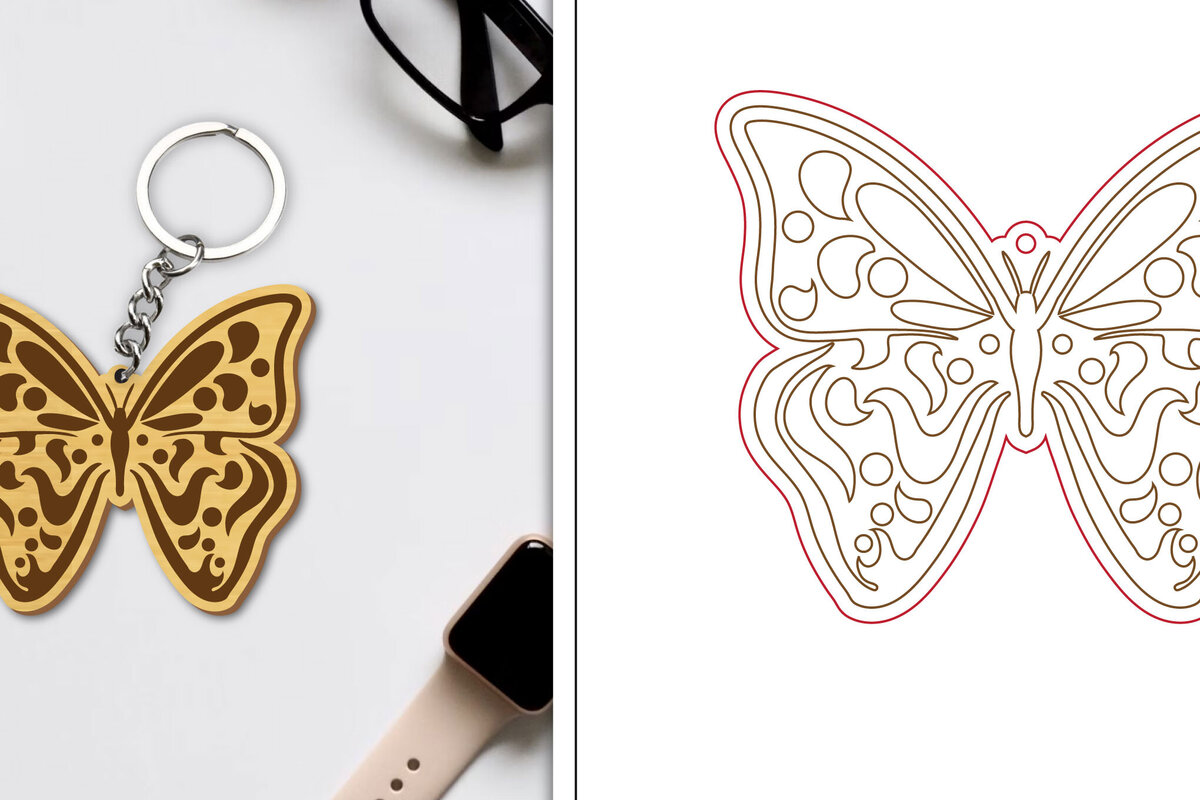Intra απο ξύλο plywood 3mm-4mm πάχος 8 Design Butterfly Keychain Δίασταση 6×6 cm INTRAFABR-99353770