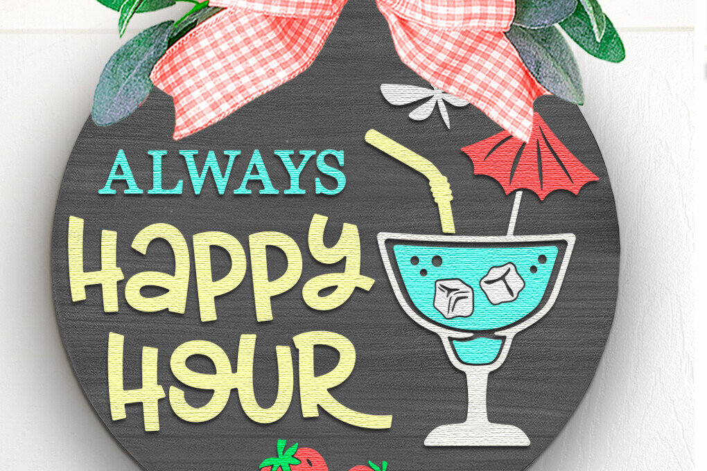 Intra απο ξύλο plywood 3mm-4mm πάχος Always Happy Hour , Summer Door Sign Δίασταση 10×10 cm INTRAFABR-118427327