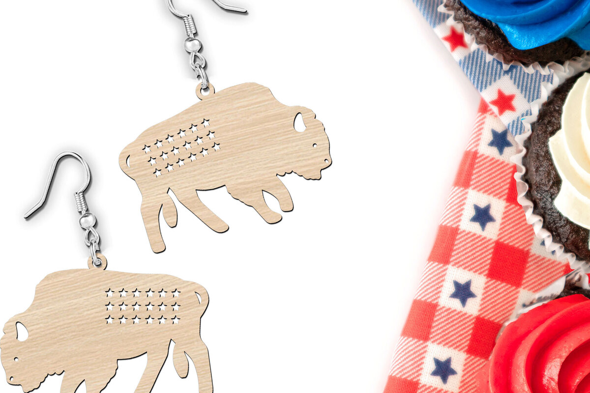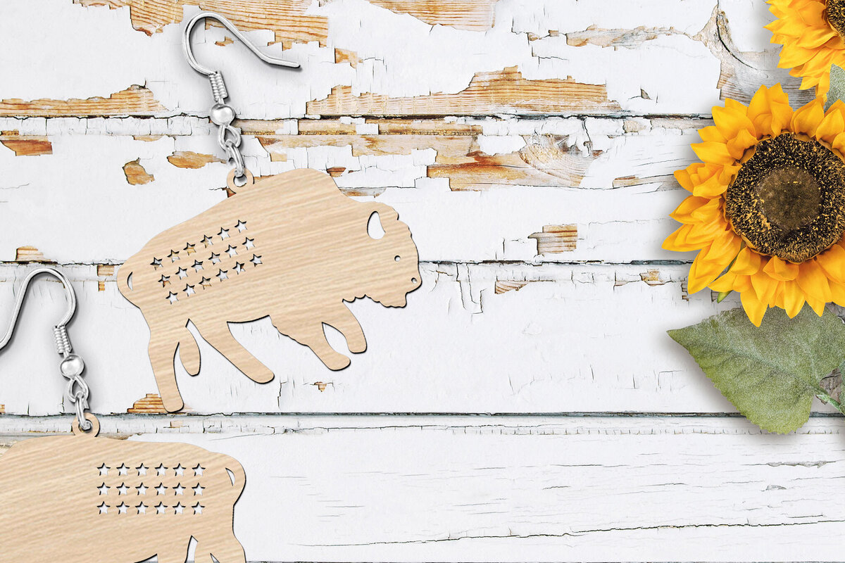 Intra απο ξύλο plywood 3mm-4mm πάχος American Buffalo Animal Earrings Δίασταση 1×1 cm INTRAFABR-120031071